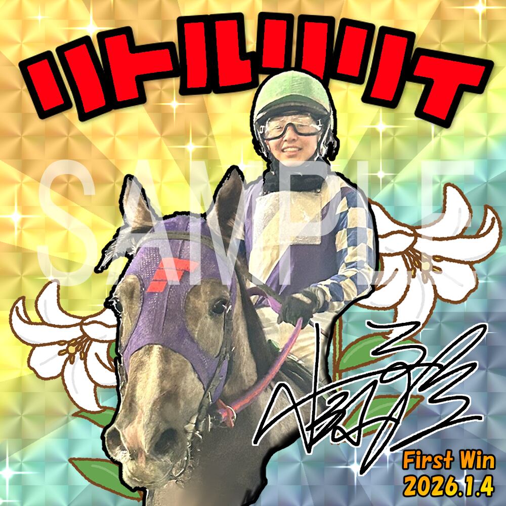 リトルリリイ号 2026年1月4日 名古屋競馬場での初勝利を記念したアクリルスタンドです。小笠原騎手サイン入り(プリント)。